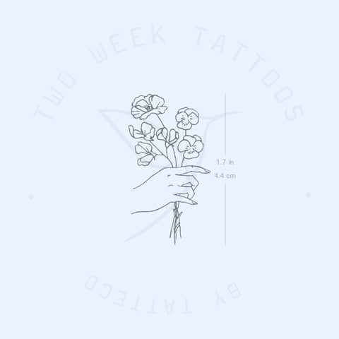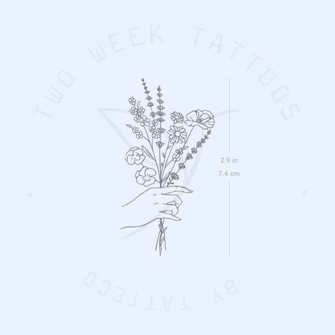 Hand Holding Flowers Semi-Permanent Tattoo - Set of 2