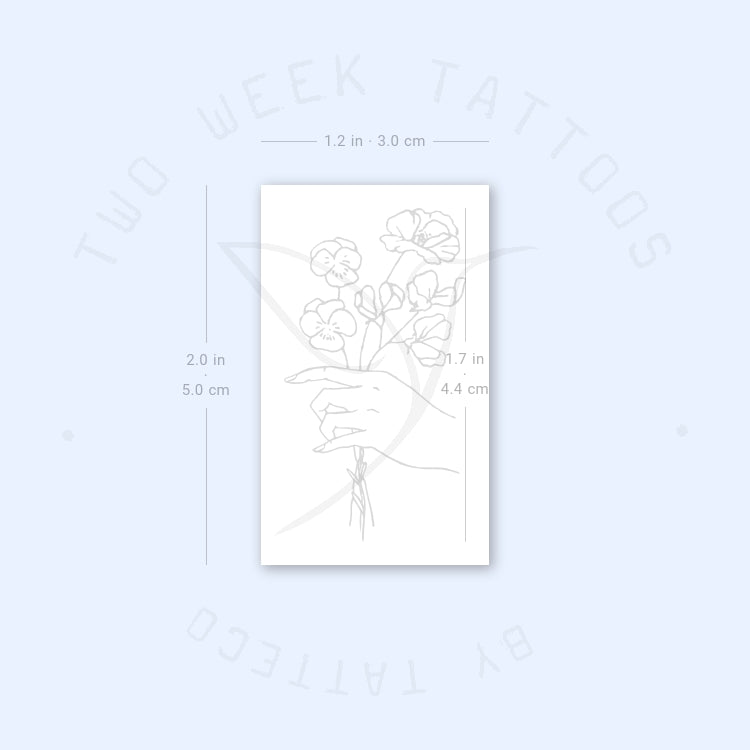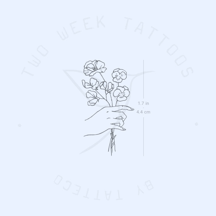 Small Hand Holding Flowers Semi-Permanent Tattoo - Set of 2