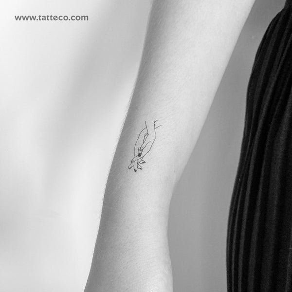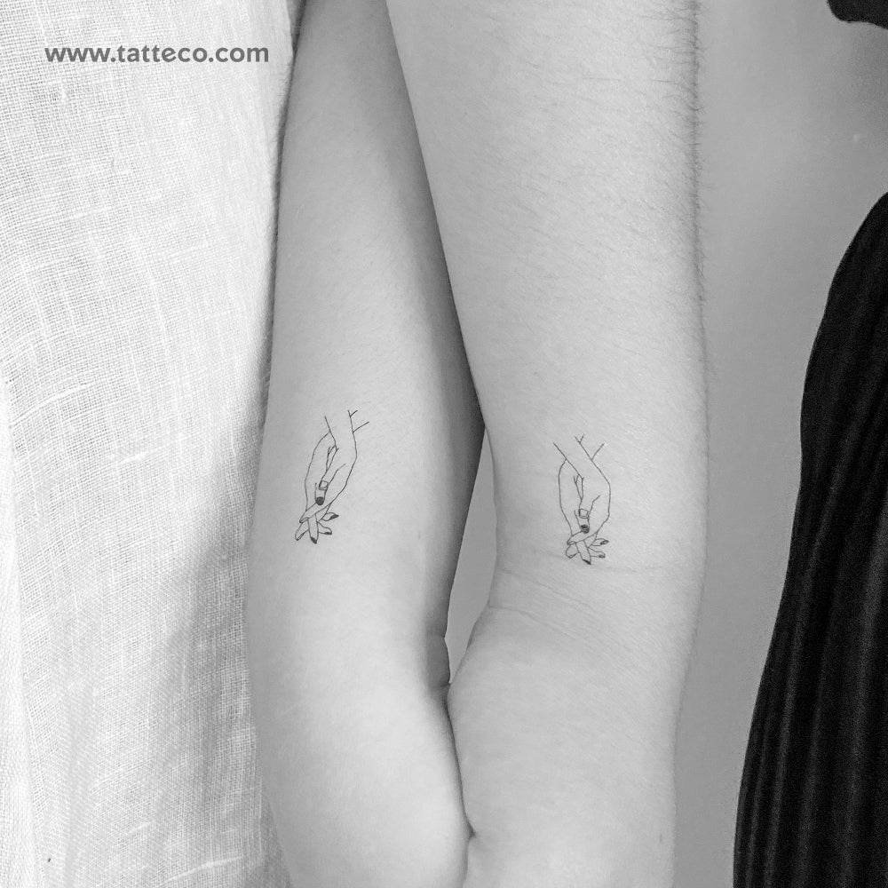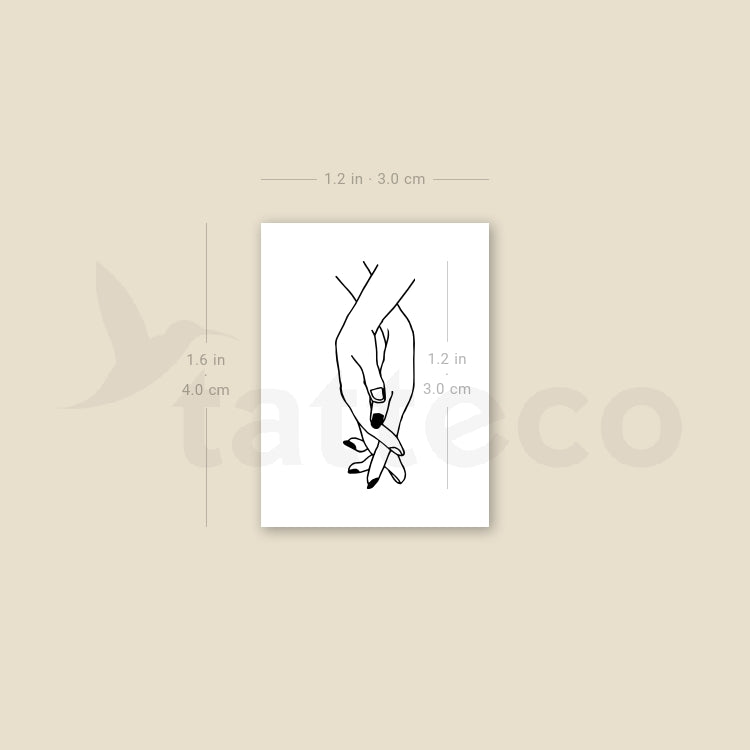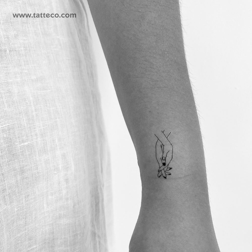 Fine line style holding hands temporary tattoo.