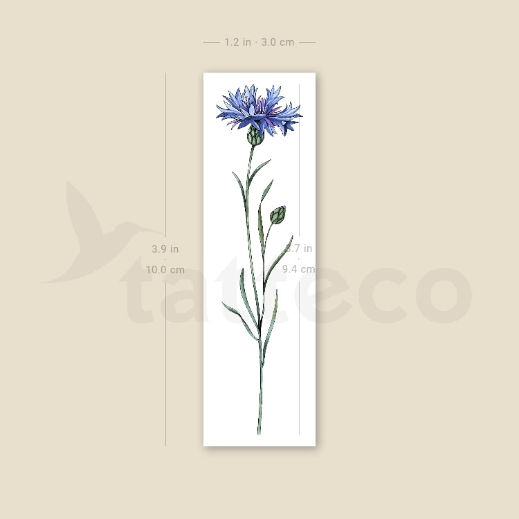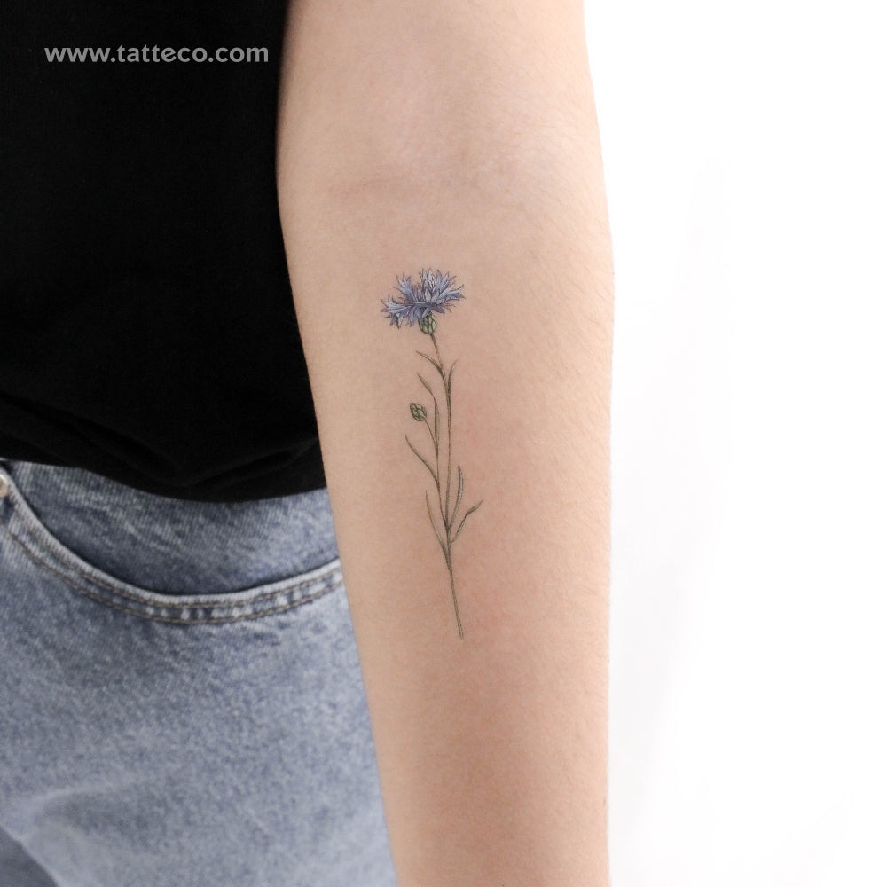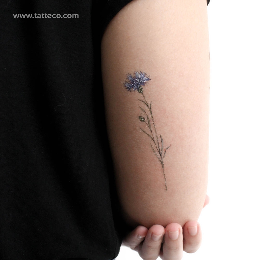 Watercolor cornflower by Ann Lilya temporary tattoo.
