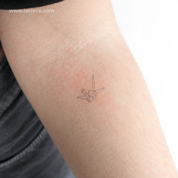Fine line style orizuru (or origami crane) temporary tattoo.