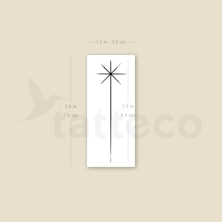 In a world of 5-pointed stars, Puntuak’s elegant shooting star fake tattoo stands on its own. This eye-catching design features a 7-pointed star atop a long tail. Depicting a star as it streaks across the sky, this ethereal design will add a touch of magic wherever it is placed.