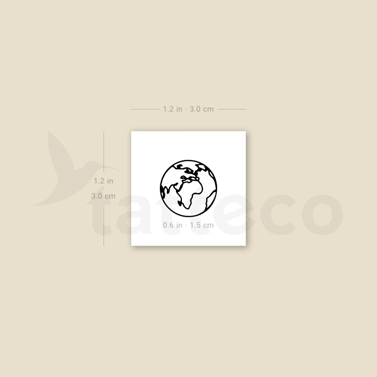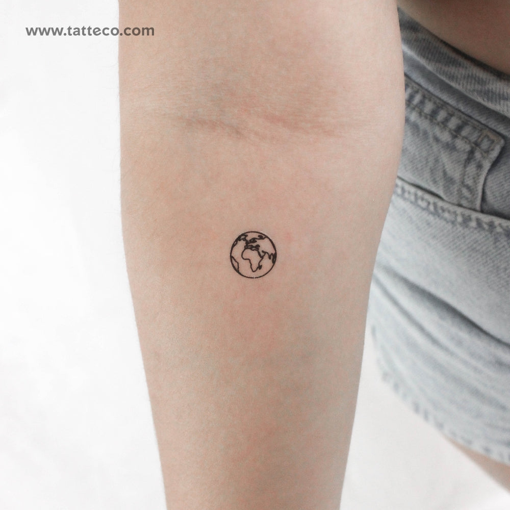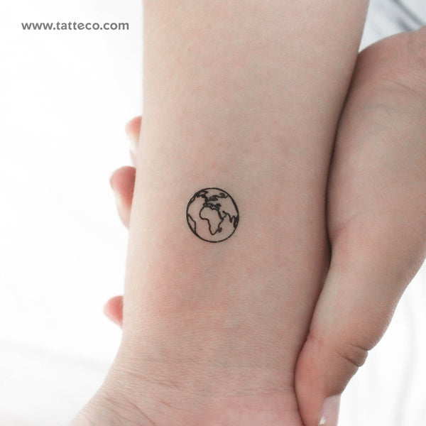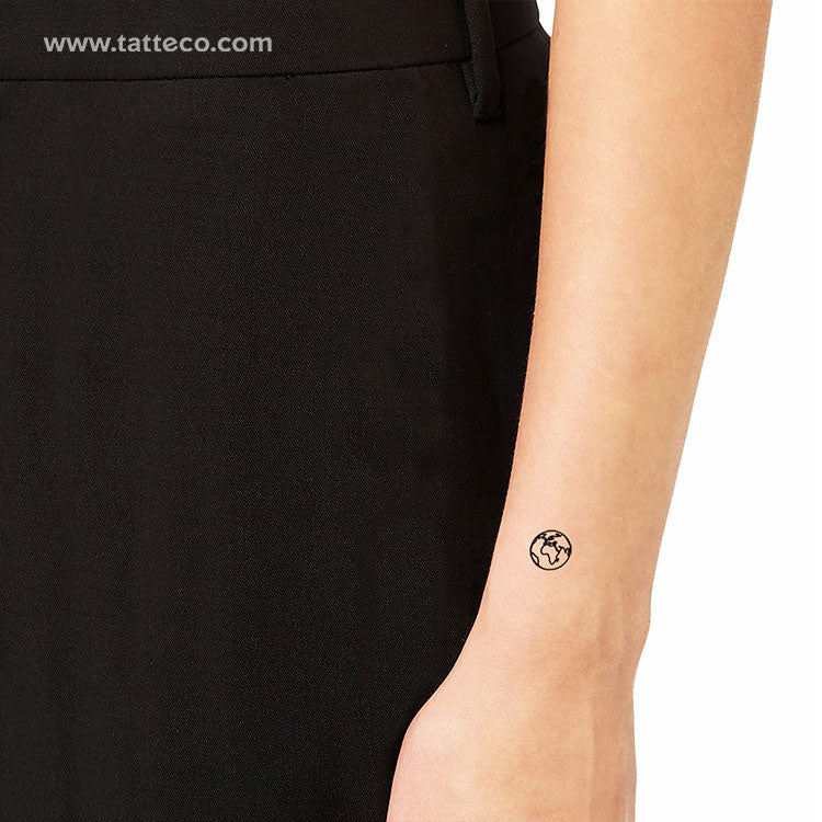 Small fine line style earth (Africa and Europe) temporary tattoo.
