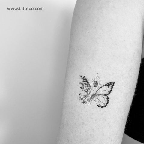 Small Half Flower Half Butterfly Temporary Tattoo - Set of 3