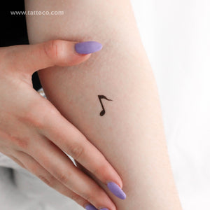 As such, people who choose our quaver fake tattoo typically appreciate a faster music tempo. Whether they are jazz lovers or just prefer exciting pieces, this note is perfect for them.