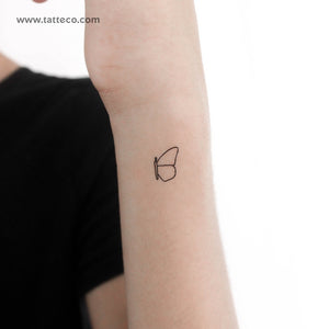 Minimalist fine line left half butterfly wing temporary tattoo.