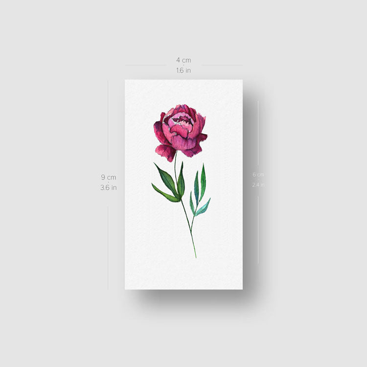 Watercolor style pink peony temporary tattoo.