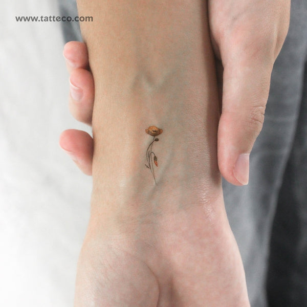 Small California poppy by Lena Fedchenko temporary tattoo.