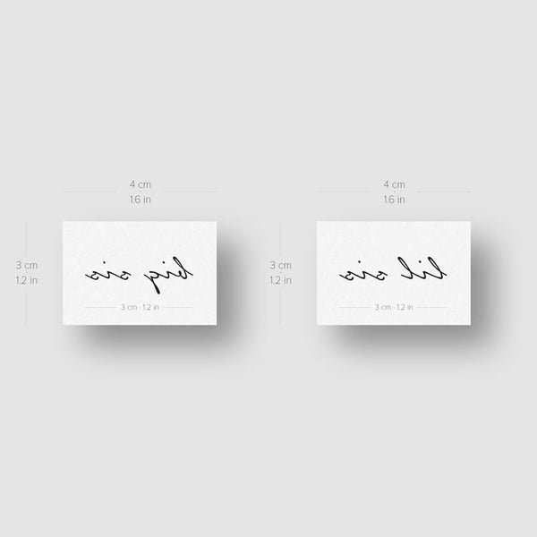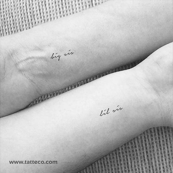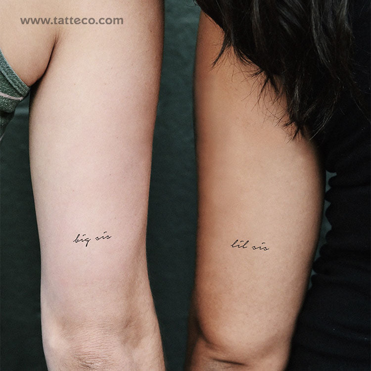 Matching 'big sis' and 'lil sis' handwritten script temporary tattoos.