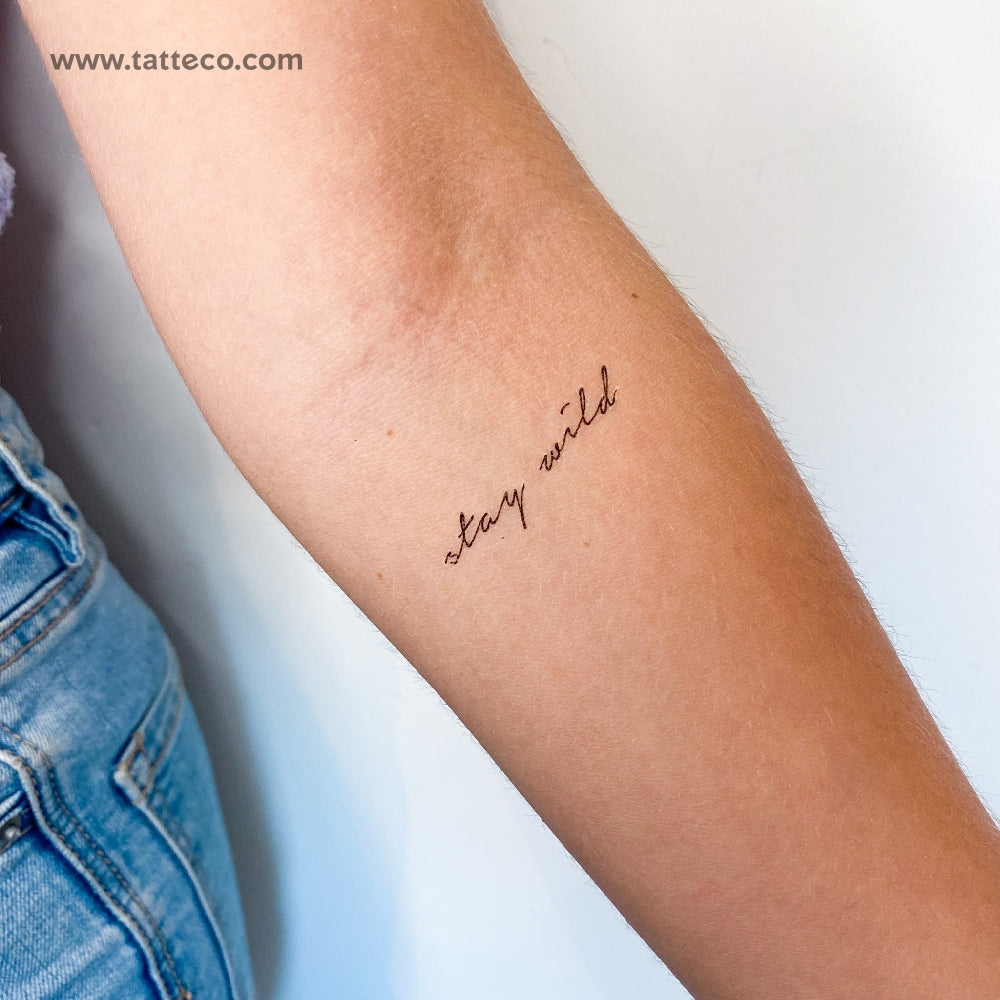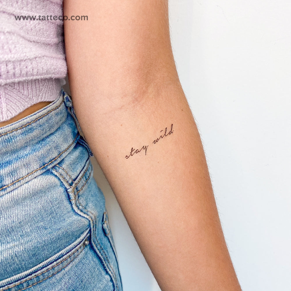 'Stay wild' handwritten script temporary tattoo.