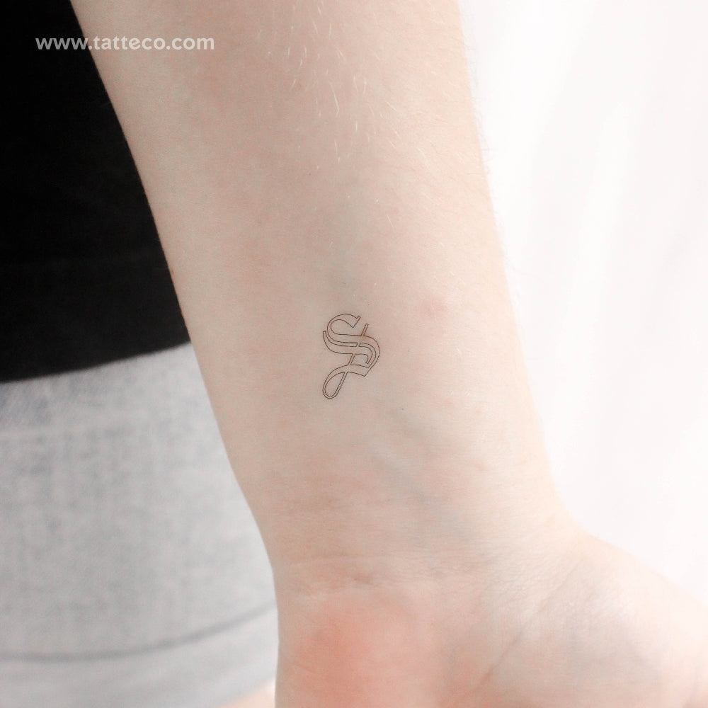 Small gothic S letter outline temporary tattoos.