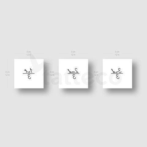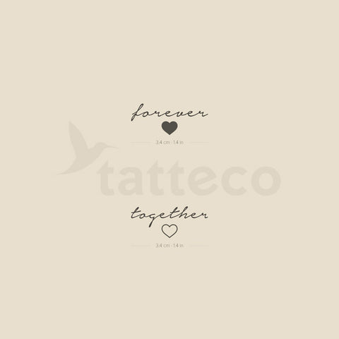 In addition to contrasting or matching symbols, matching tattoos can also feature keys and keyholes, phrases that correspond together, and outlines of symbols that are filled according to the person getting the tattoo. For example, the triple matching hearts temporary tattoo you can check out below.