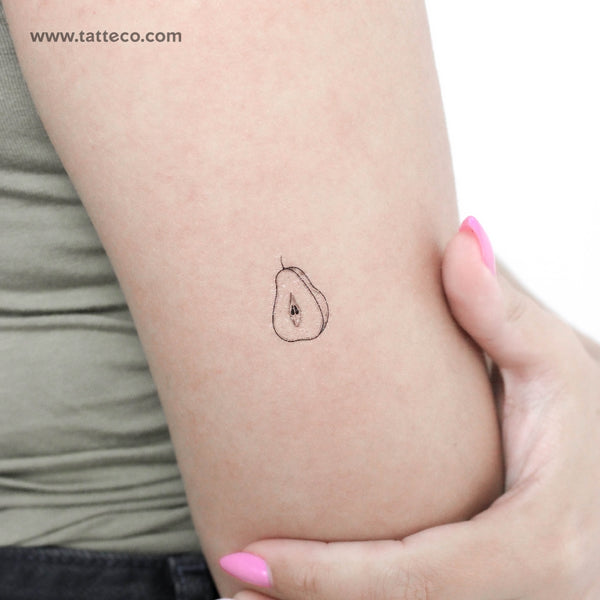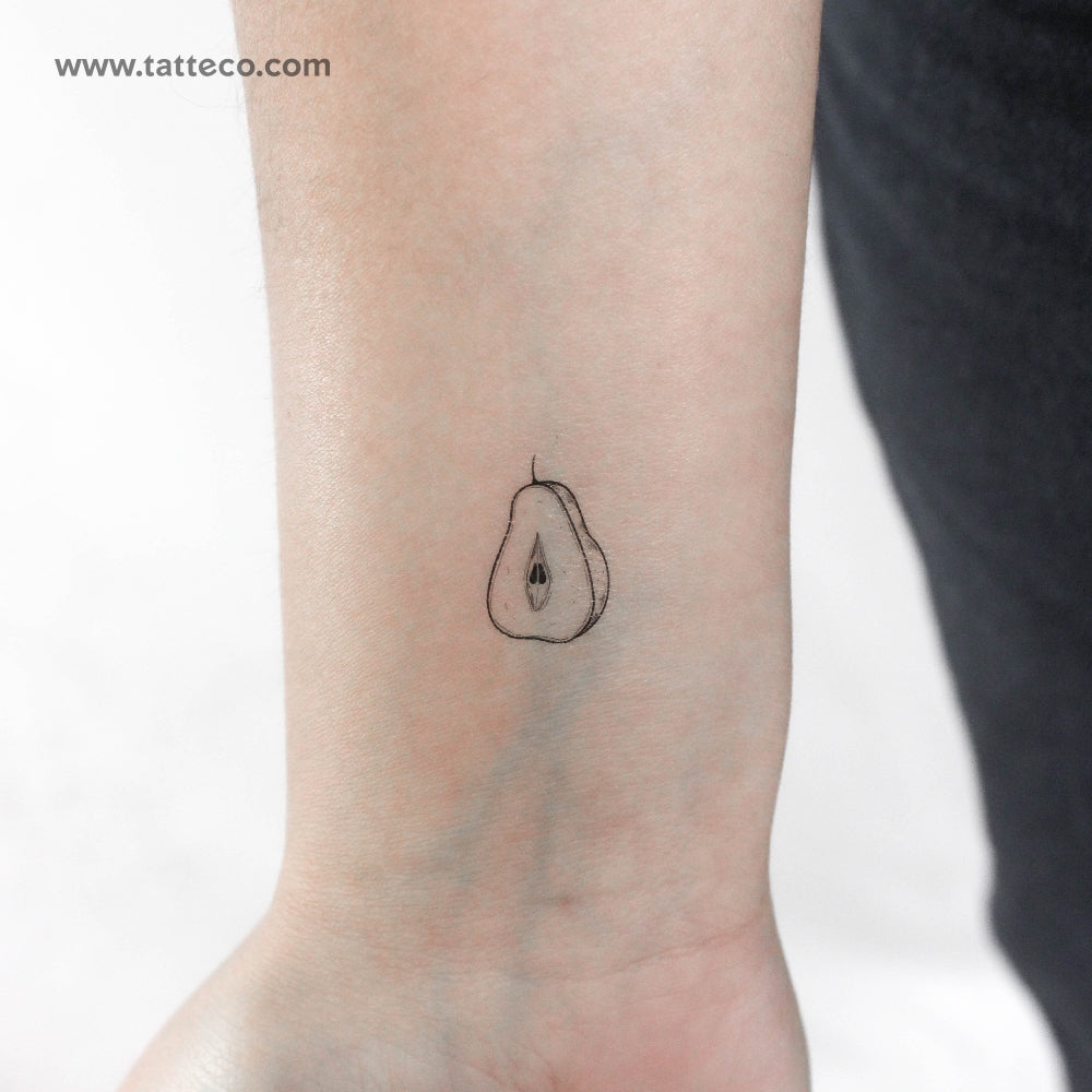 Small pear temporary tattoo.