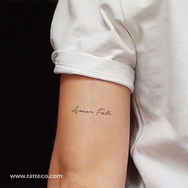 Looking for a simple but powerful Latin phrase? This “Amor Fati” temporary tattoo may be the ideal choice.