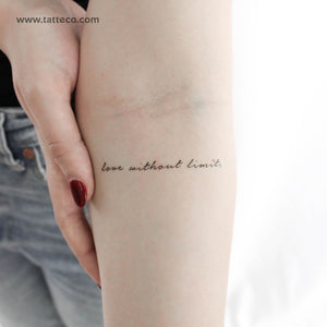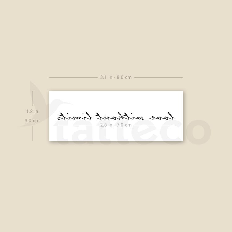 For some people, our handwritten ‘love without limits’ fake tattoo is a reminder to always love unconditionally, even when it's challenging. These powerful words remind us that everyone is deserving of love and that the world is much better when we love freely.