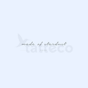 'Made of stardust' handwritten script semi-permanent tattoo.