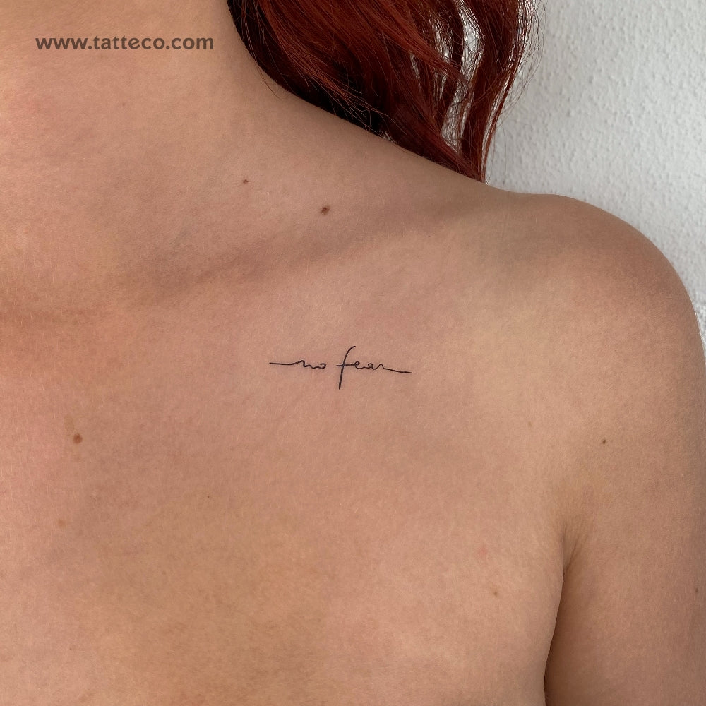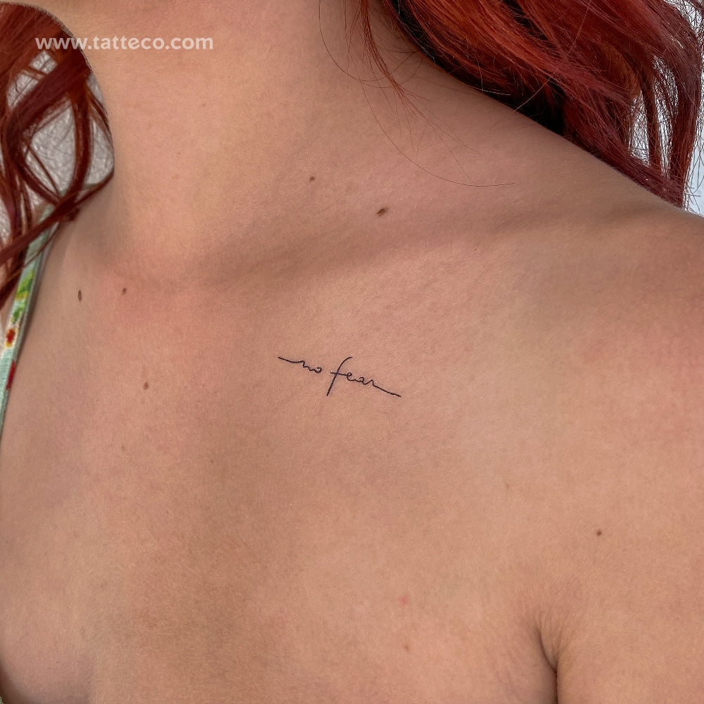 Designed using an elegant handwritten font, our ‘no fear’ sticker tattoo is a unique way to practice self-love. By freeing yourself from the constraints of others’ judgments or opinions, you can truly live a life with no fear.