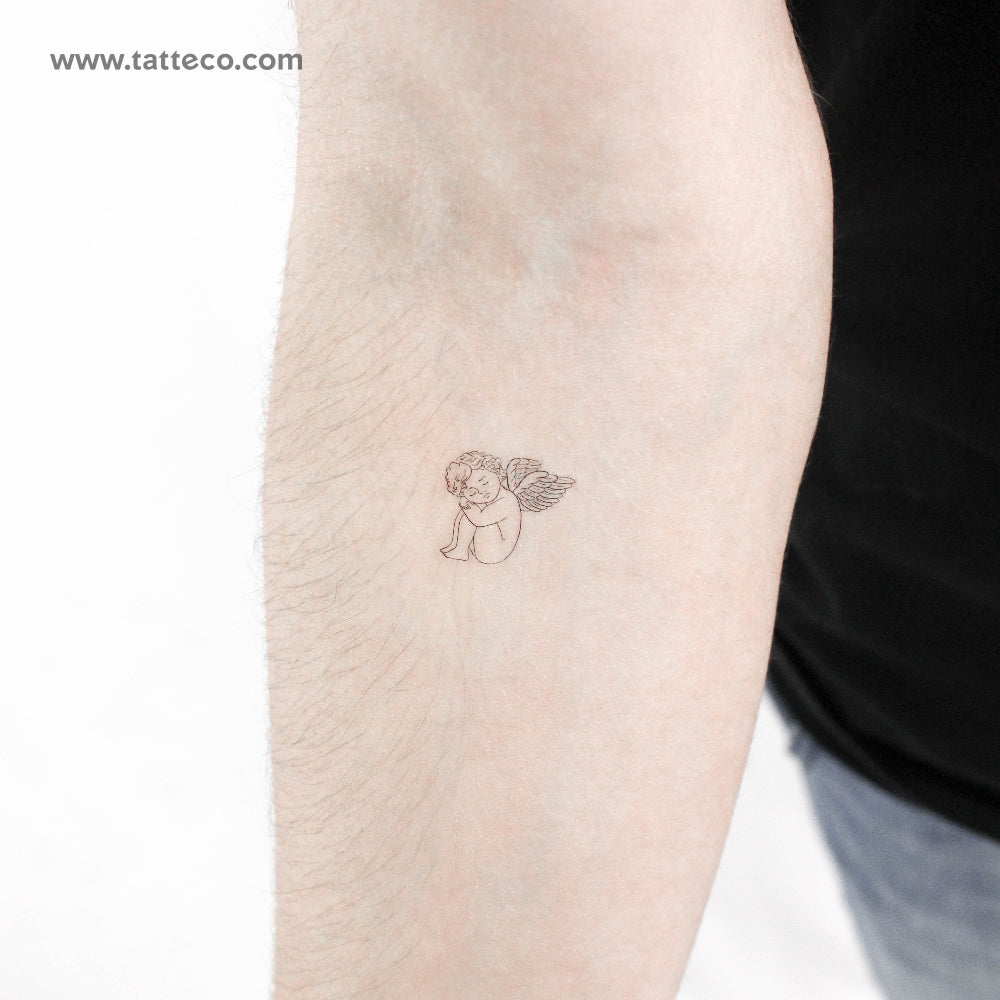Cherub resting temporary tattoo.