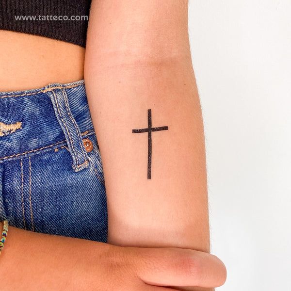 Although the cross icon predates modern religions, it has been adopted by Christians as one of their main spiritual symbols. Today, most cross designs are immediately associated with spirituality, but the truth is that there is a lot more behind this millenary icon. Our small bold cross temporary tattoo is a perfect option for those who believe in this symbol’s modern connotation as well as people who are more intrigued by the origins of this icon.