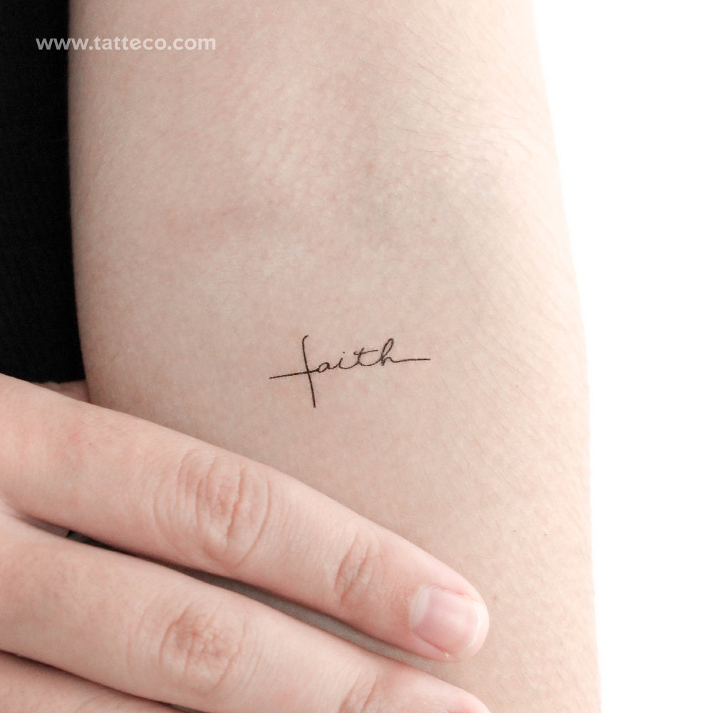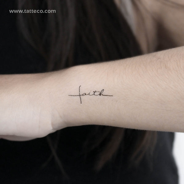 Small minimalist 'faith' handwritten script temporary tattoo.