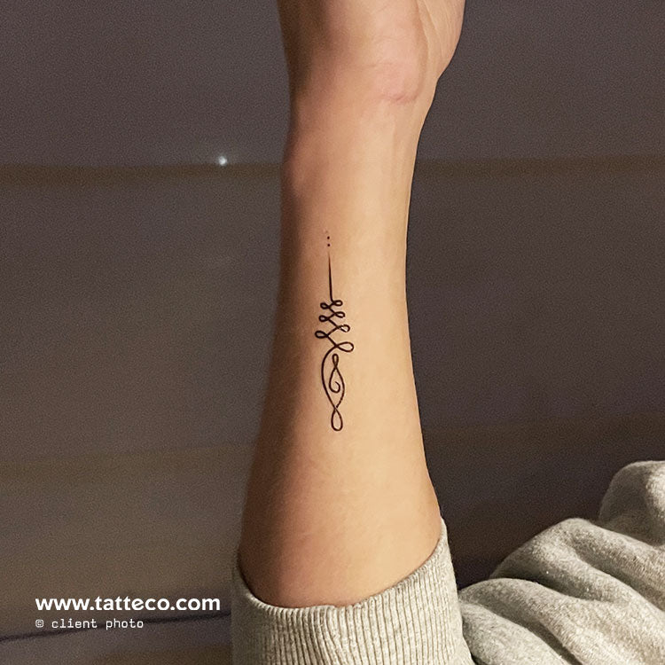 This temporary unalome tattoo is perfect if you want to test out this gentle design in different parts of your body or if you want a reminder that life is indeed difficult, but also an amazing learning experience for all of us.