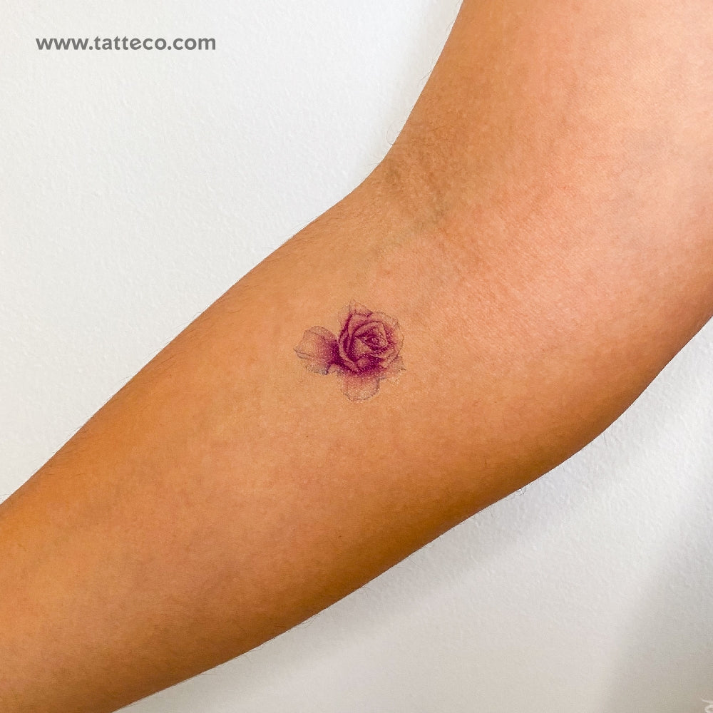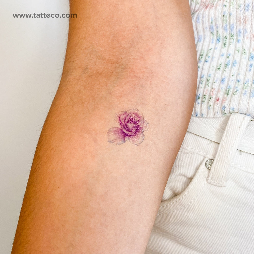 Illustrative Purple Rose Head Temporary Tattoo - Set of 3