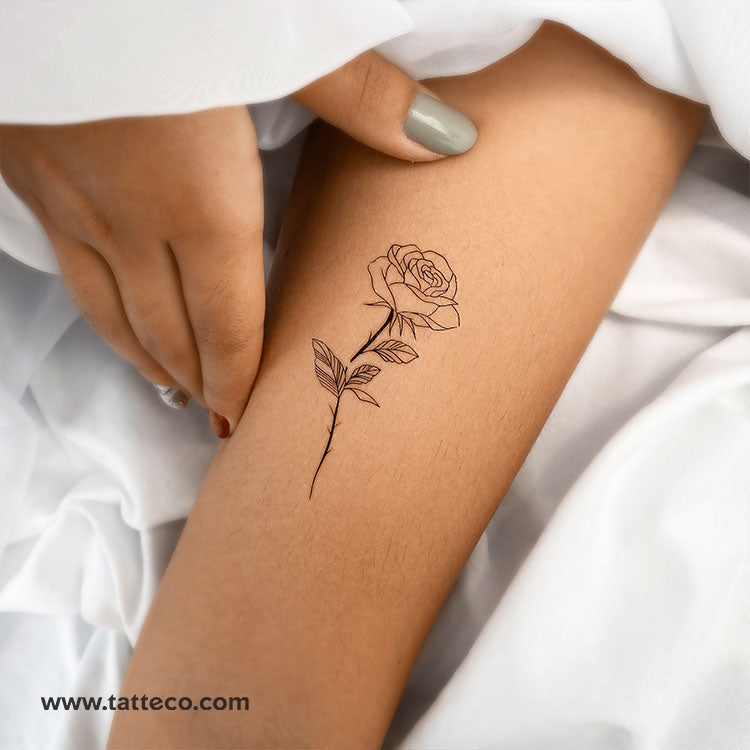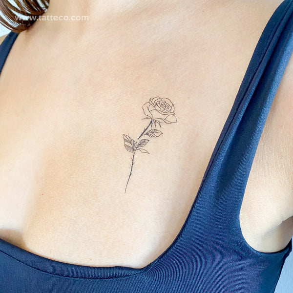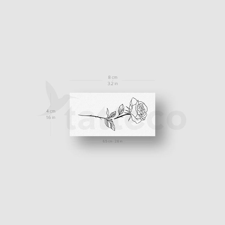 At first glance, you might not notice that this fine line rose fake tattoo is a bit different from other designs. But closer inspection reveals that the stem of this rose is broken in two, imbuing the design with specific meaning.