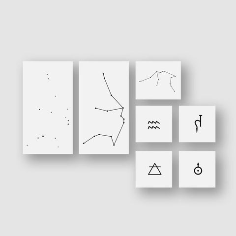 Aquarius Astrology Symbols Temporary Tattoo Set