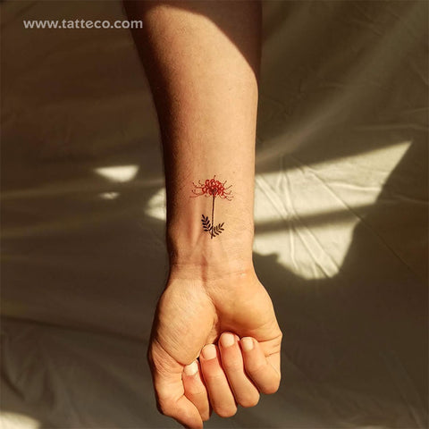 Small Red Spider Lily By Zihee Temporary Tattoo - Set of 3
