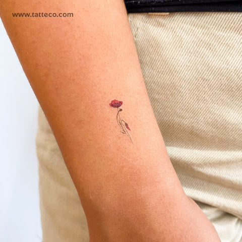 Small Watercolor Poppy Temporary Tattoo - Set of 3