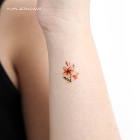 Small Watercolor Plumeria Temporary Tattoo - Set of 3