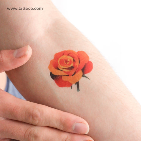 Small Orange Rose Temporary Tattoo by Zihee - Set of 3
