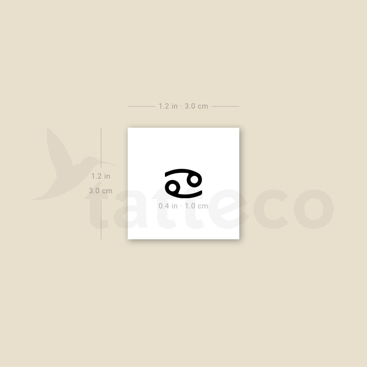 Represented by the crab, the zodiac symbol for Cancer references both the shape of a crab and a woman’s breasts to symbolize their nurturing nature. This Cancer zodiac symbol temporary tattoo is small in size and has a minimalist design, making it easy to place anywhere on the body.