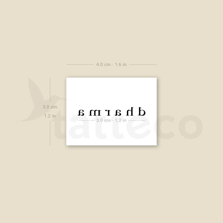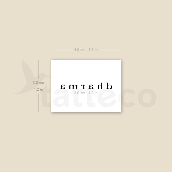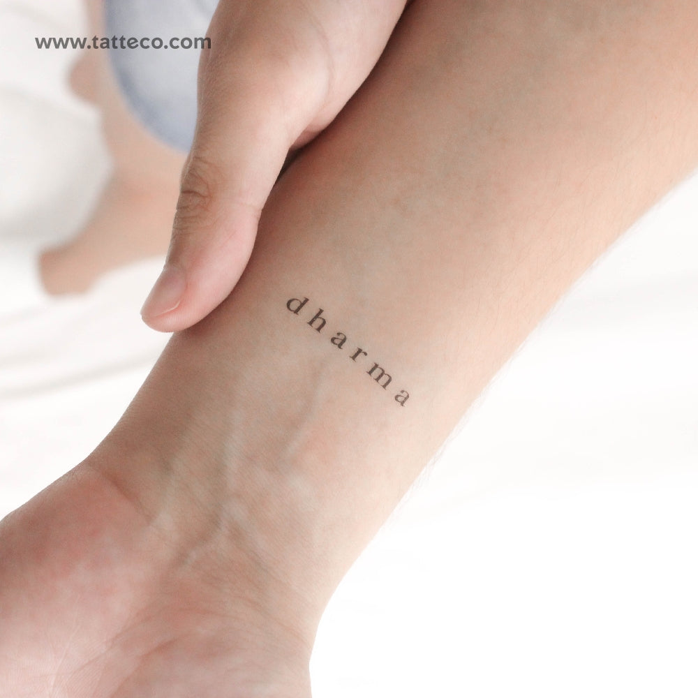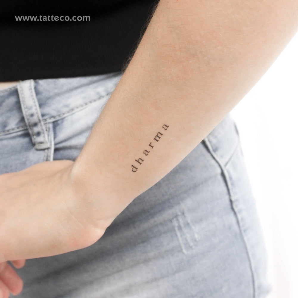 Minimalist 'dharma' typewriter font style temporary tattoo.
