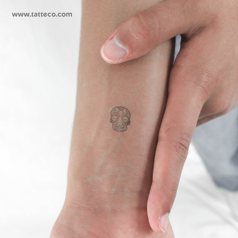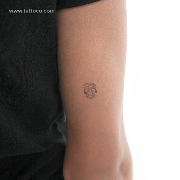 Fine Line Sugar Skull Temporary Tattoo - Set of 3