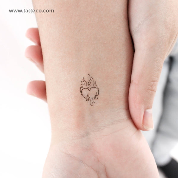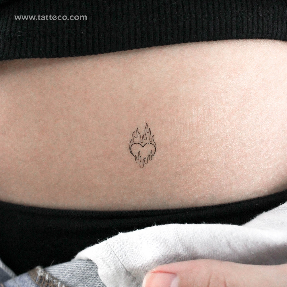 Flaming Heart Temporary Tattoo - Set of 3
