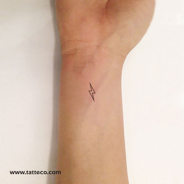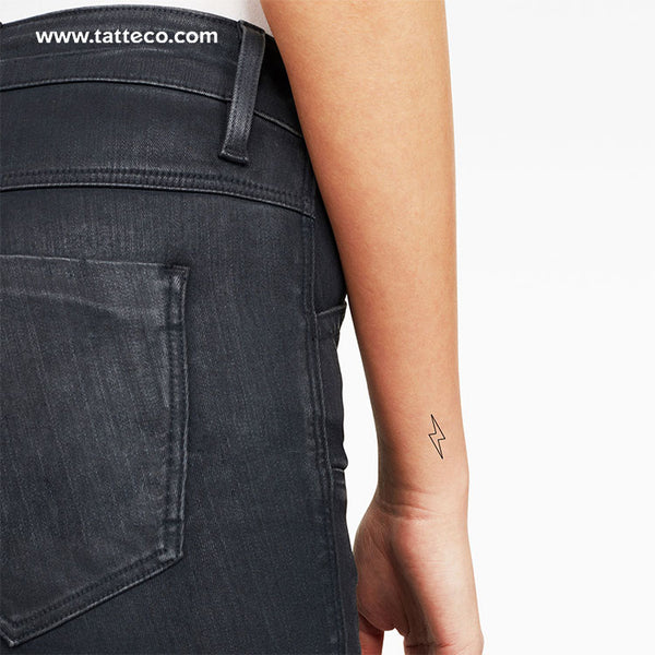If you’re looking for a small yet powerful piece that can remind you to stay strong no matter what life throws your way, our lightning bolt outline temporary tattoo is the perfect design for you!