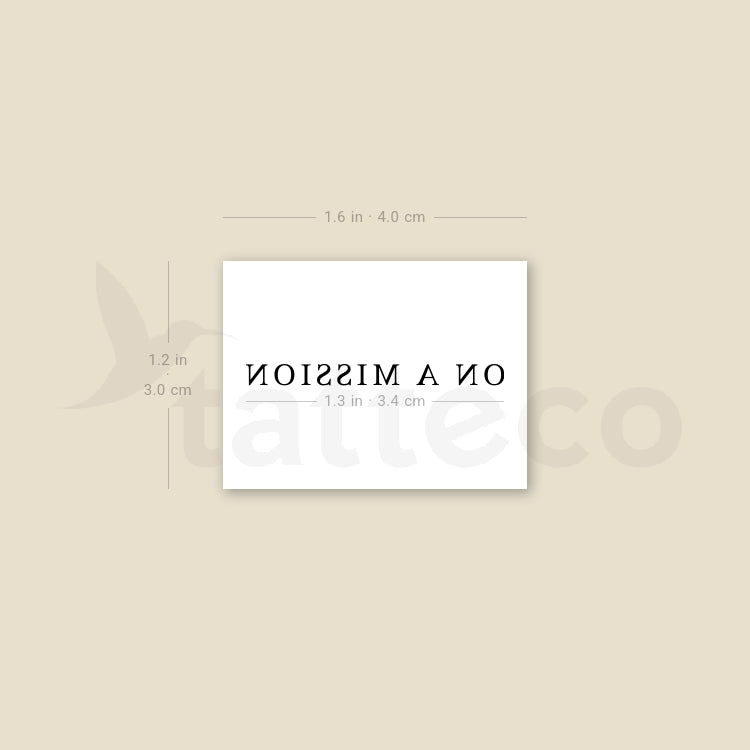 ON A MISSION temporary tattoo.