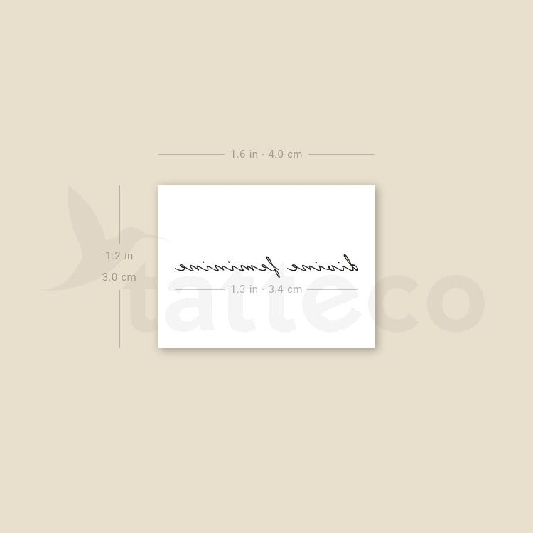Small handwritten font style divine feminine temporary tattoo.