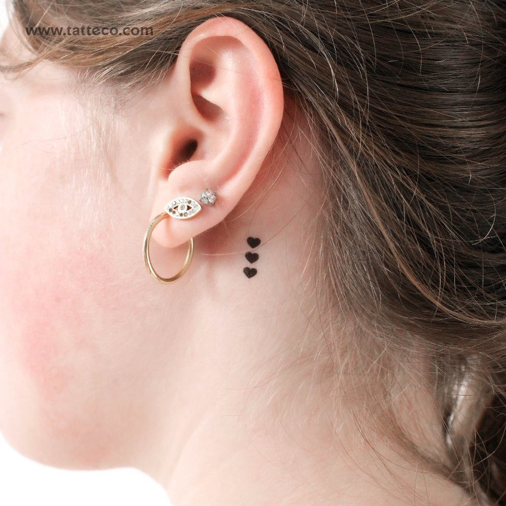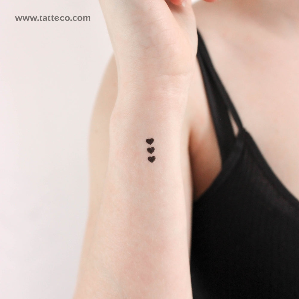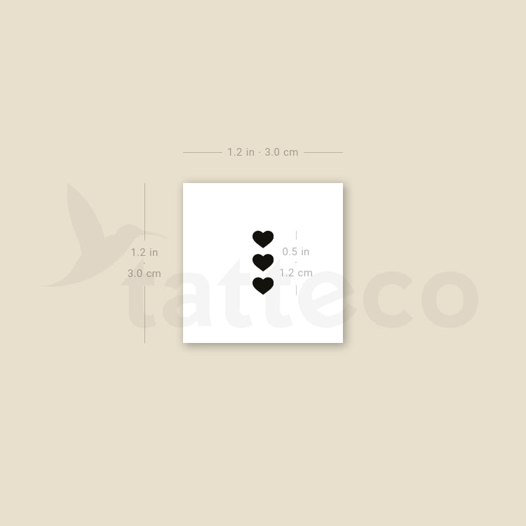 Three Tiny Black Hearts Temporary Tattoo - Set of 3