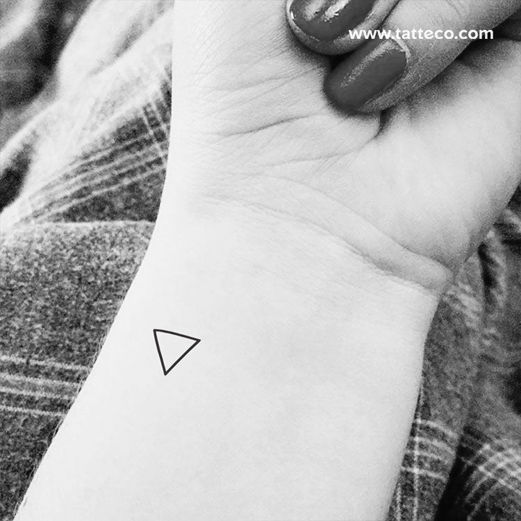 While this might appear like an ordinary triangle, to the alchemists it represented so much more. Persecuted for their beliefs, these early scientists used mundane symbols as a kind of code to conceal their work. Our water alchemical fake tattoo depicts this classic symbol using environmentally-friendly black ink.
