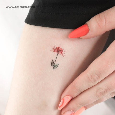 Small Red Spider Lily By Zihee Temporary Tattoo - Set of 3