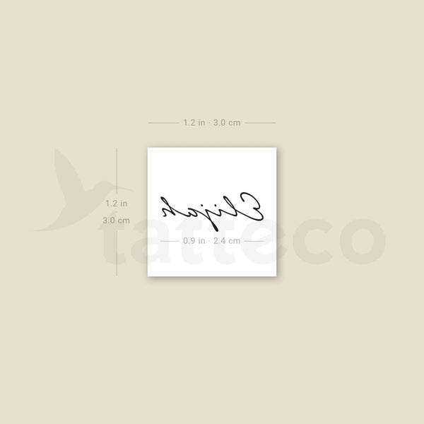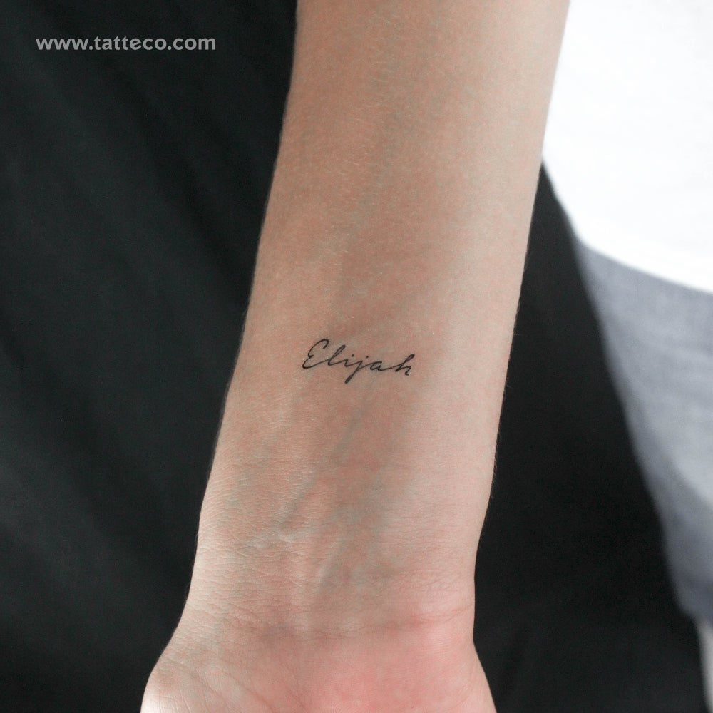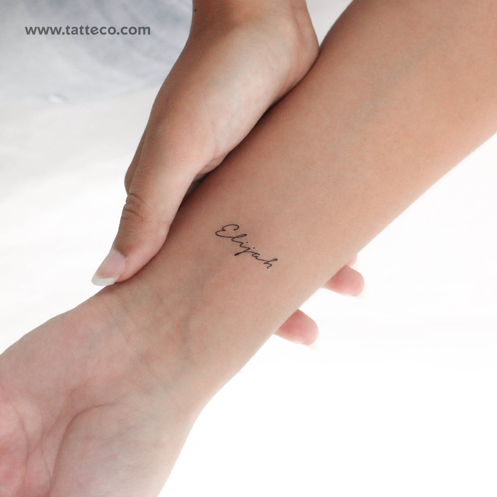 Handwritten font style Elijah temporary tattoo.