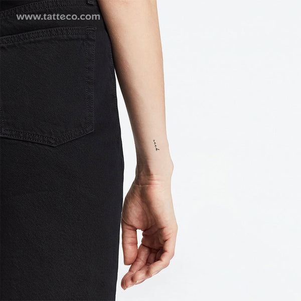 Our temporary seek tattoo features a handwritten script design that’s packaged and shipped in paper packaging. The non-permanent design is also printed on biodegradable material using ink that doesn’t contain toxic ingredients, making it the ideal choice for ecological-minded individuals.