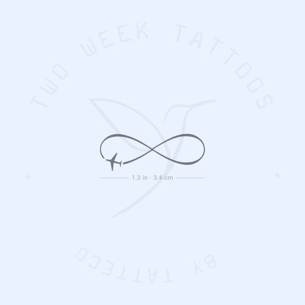 Some people pick this infinity airplane long-lasting temporary tattoo as a symbol of eternal love or friendship, particularly in relationships where people are separated by distance. It could be a unique way to show the love between a far-flung family. For other ideas, check out the full collection of travel 2-week temporary tattoos.