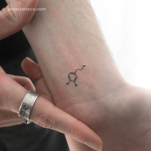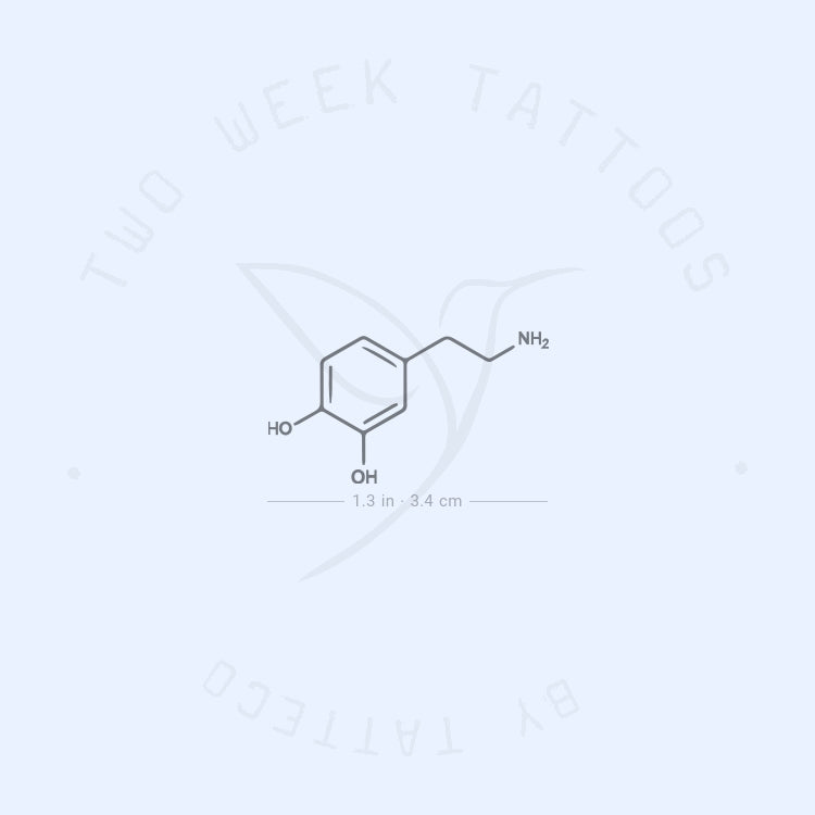 Minimalist dopamine chemical structure semi-permanent tattoo.