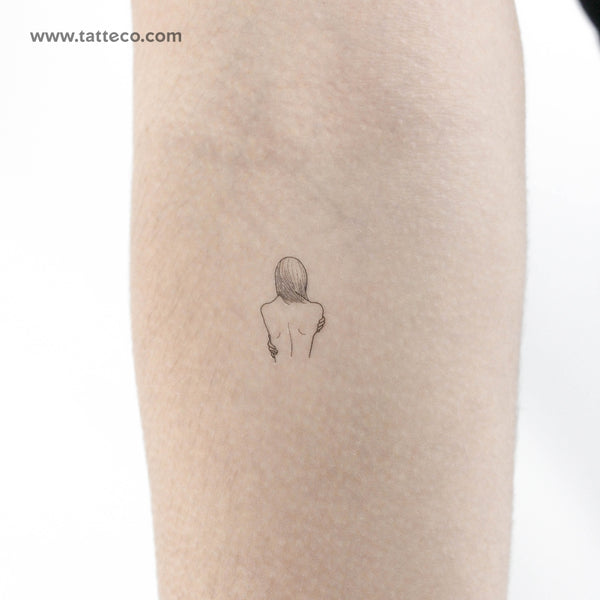 Fine line style self love woman temporary tattoo.