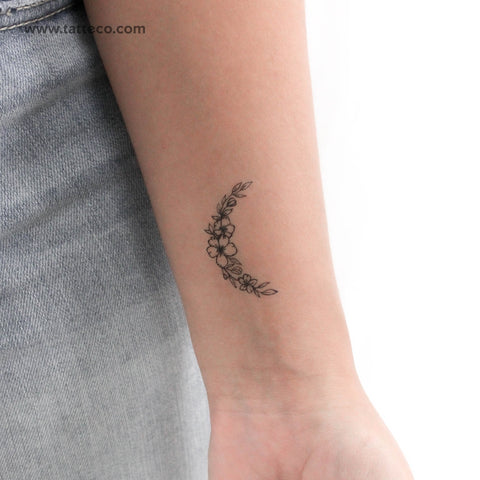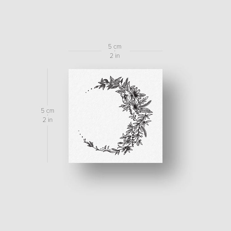 This environmentally-responsible flower crescent temporary tattoo features a collection of flowers arranged in a crescent moon shape, so you can give your non-permanent piece a unique meaning. It’s printed on biodegradable paper, making it an ideal option for anyone who’s longing for a symbolic piece that doesn’t harm the environment.
