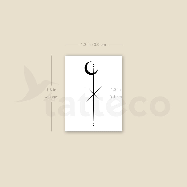 North Star And Moon Temporary Tattoo - Set of 3