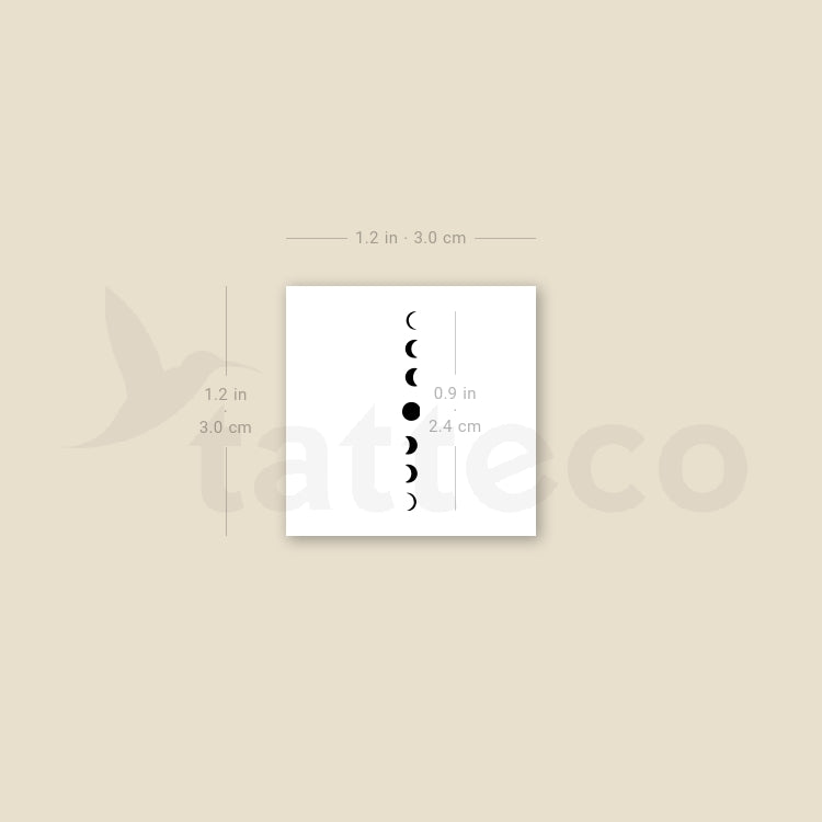 Small Vertical Moon Phases Temporary Tattoo - Set of 3